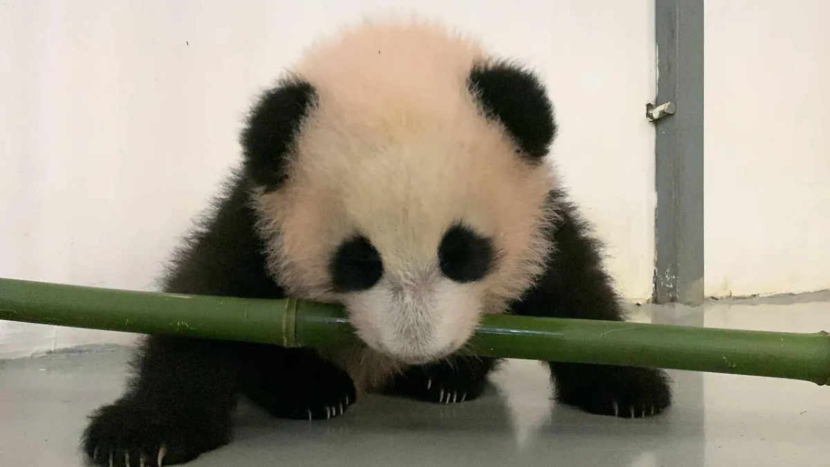 Малышка-панда из Московского зоопарка "атаковала" бамбук и умилила россиян