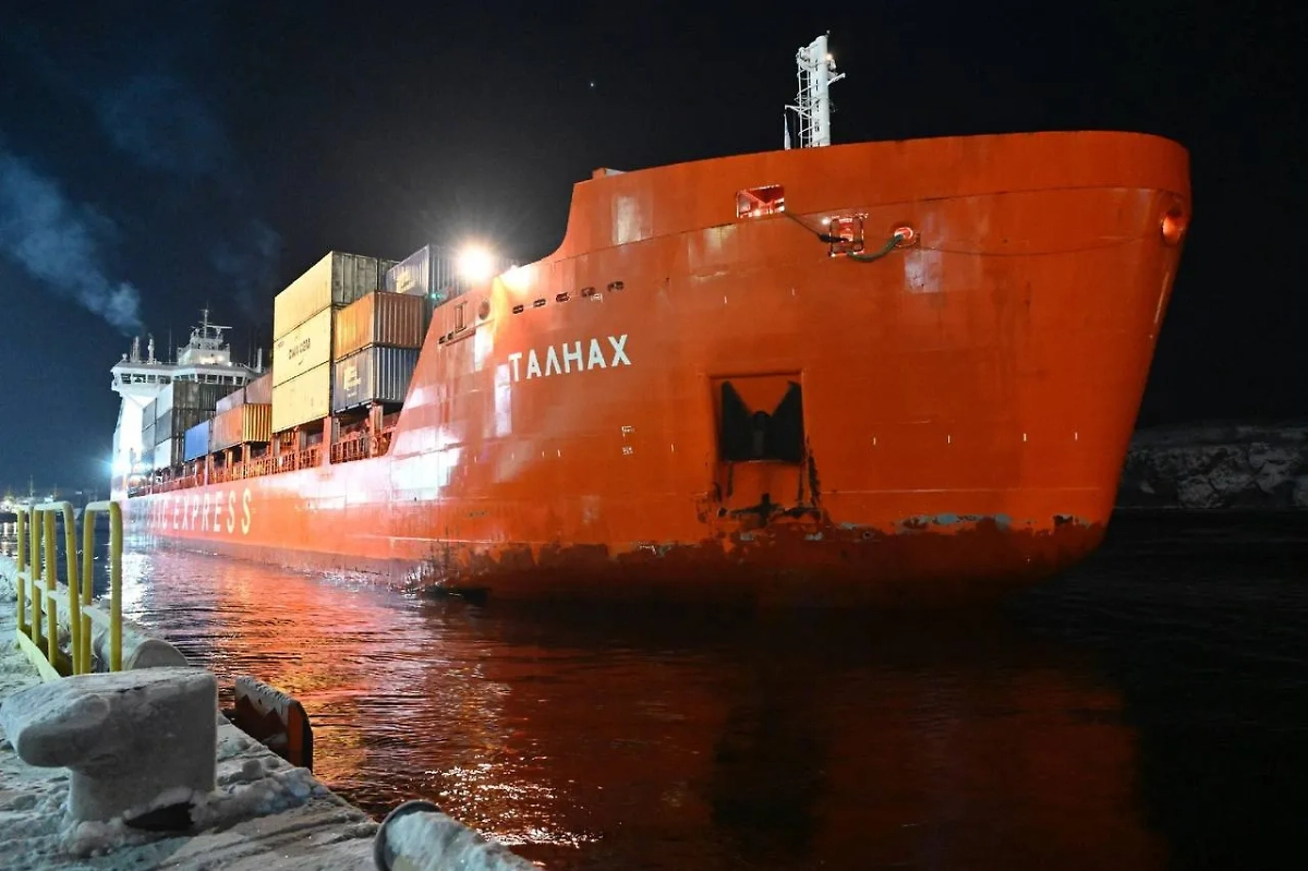 Дизель-электроход "Талнах", который зафиксировал рекорд по перевозке грузов по Северному морскому пути. Обложка © Telegram / "Атомфлот"