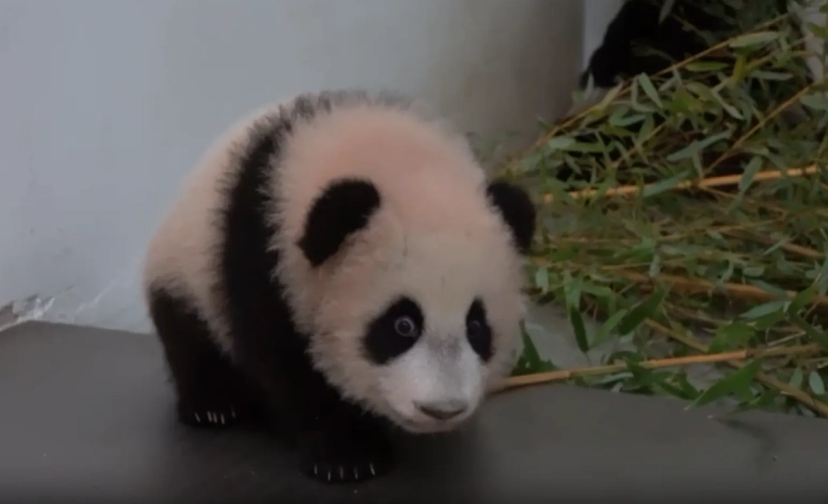 Пандёнок из Московского зоопарка учится ходить. Видео © t.me / Светлана Акулова