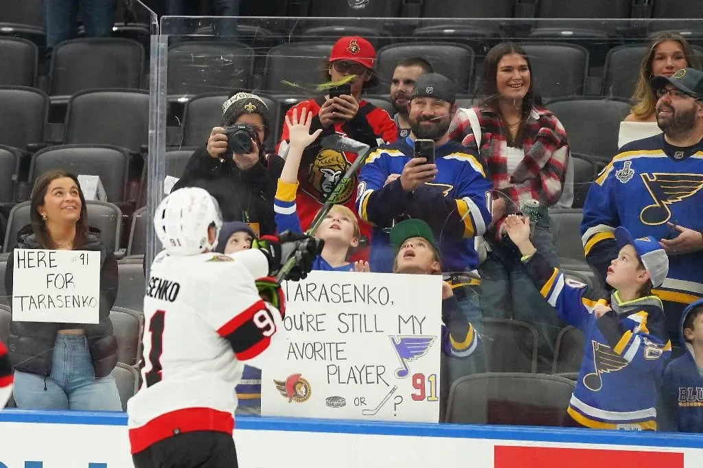 Владимир Тарасенко и фанаты "Сент-Луиса", за который он провёл десять сезонов. Обложка © X / Ottawa Senators
