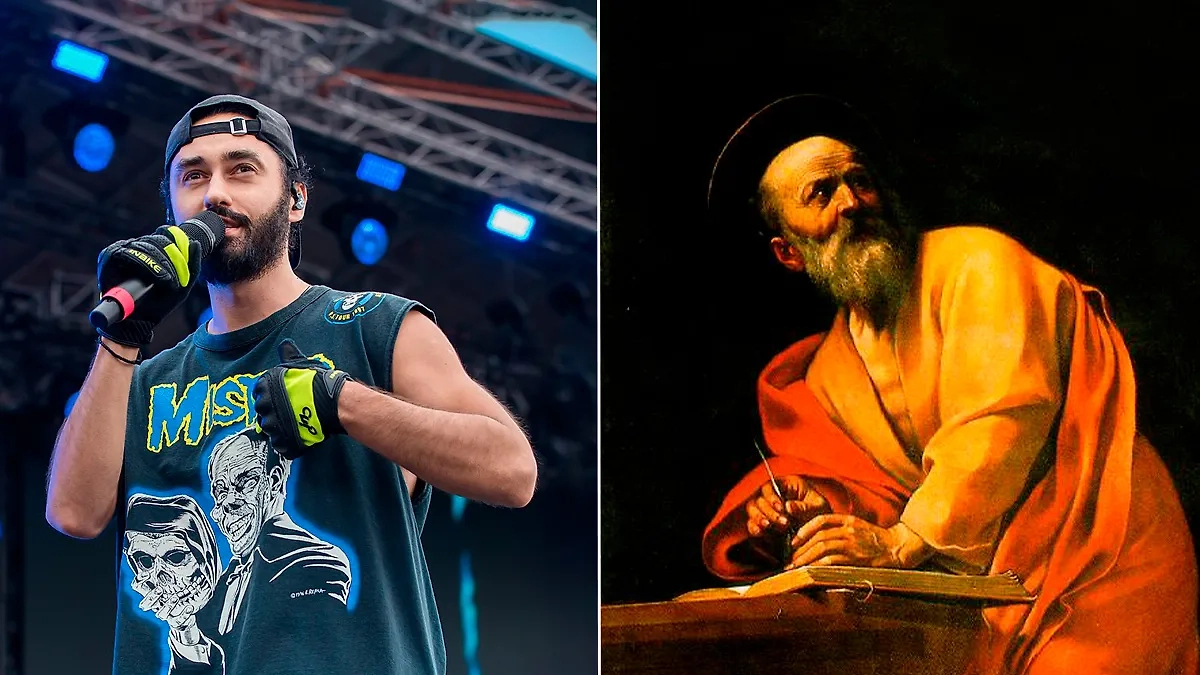 Значение имени Матвей в прошлом и в настоящем. Рэпер Мот (Матвей Мельников) и апостол Матфей. Обложка © Wikipedia / Okras © Wikipedia / Караваджо, «Святой Матфей и ангел»