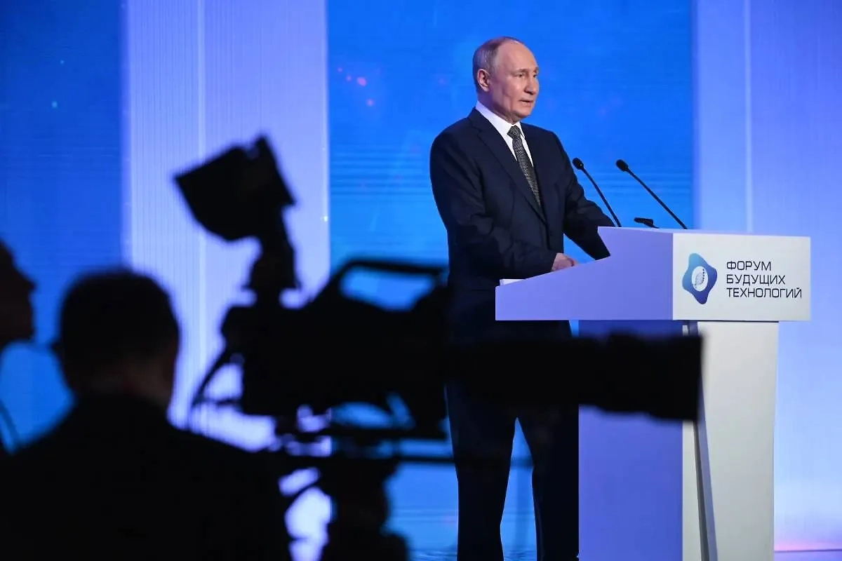 Президент РФ Владимир Путин на пленарном заседании Форума будущих технологий. Обложка © Life.ru / Павел Баранов