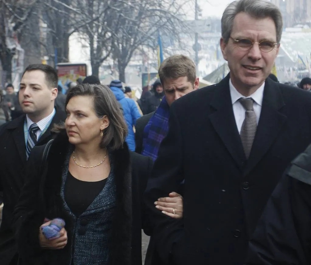 Виктория Нуланд и посол США на Украине Джеффри Пайетт — во время посещения площади Независимости в декабре 2013 года. Фото © ИТАР-ТАСС / Максим Никитин