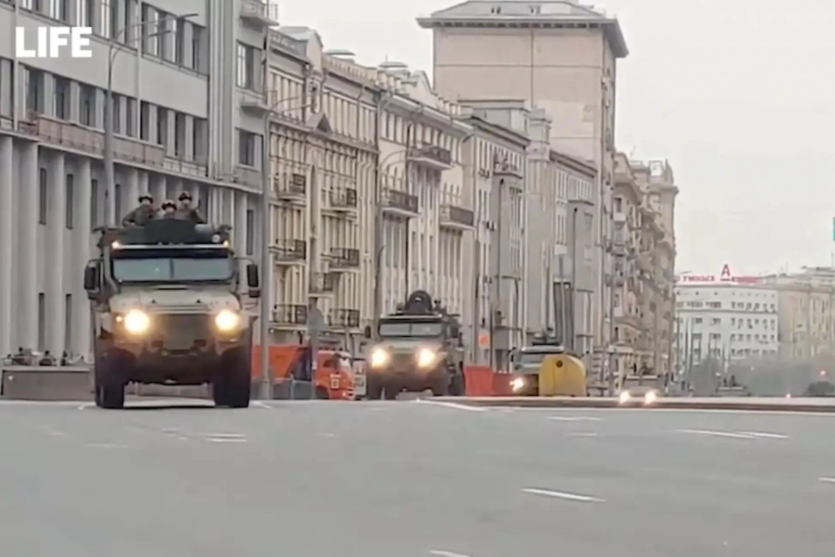 Сегодня, 26 апреля, в Москве прошла репетиция парада на Красной площади в честь 79-й годовщины Победы в Великой Отечественной войне. Перед мероприятием десятки боевых машин, в числе которых ракетный комплекс "Искандер-М" и пусковая установка ПГРК "Ярс", проехали по центру российской столицы. Life.ru публикует видео проезда военной техники.