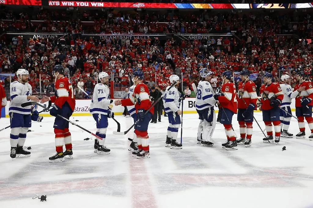 Игроки "Флориды" и "Тампы" после окончания серии первого раунда плей-офф. Обложка © X / Florida Panthers