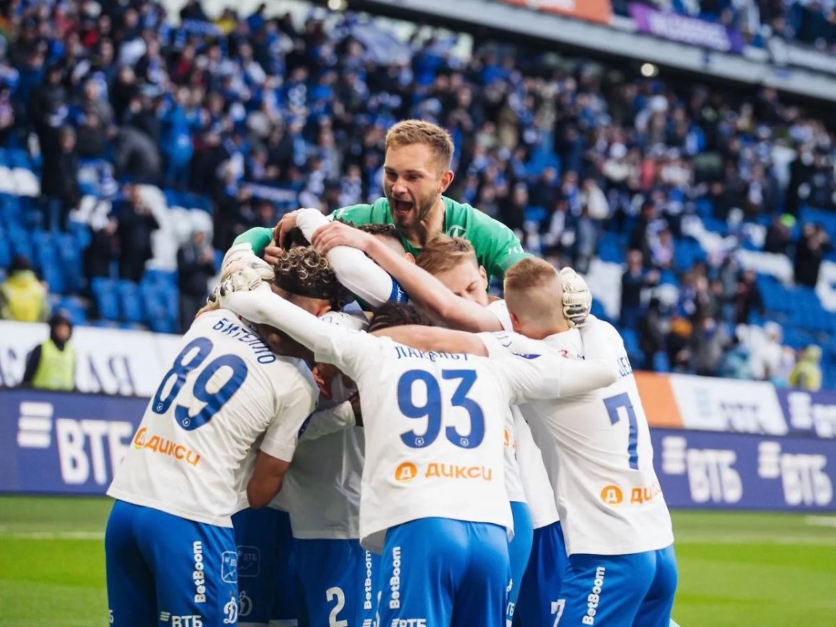 Футболисты "Динамо" после победного гола в ворота "Сочи". Обложка © Telegram / ФК "Динамо" Москва