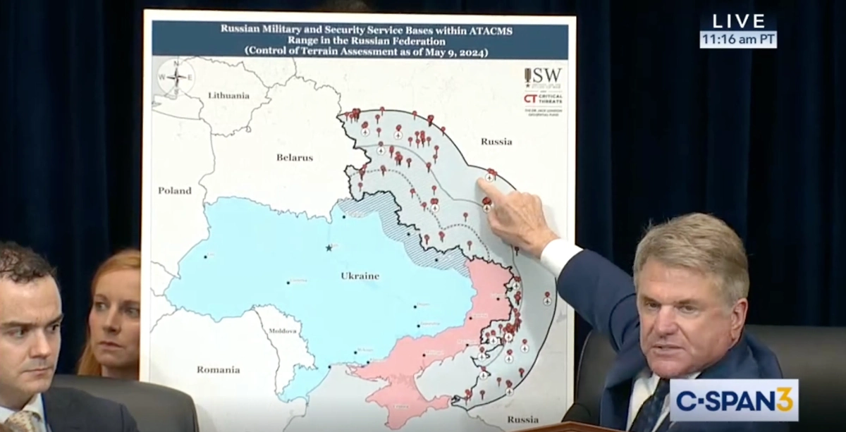 Во время слушаний в комитете Палаты представителей США по иностранным делам продемонстрировали карту российской территории с зоной, которую могут накрыть американские ракеты ATACMS в руках ВСУ. Её показал глава комитета Майкл Маккол и призвал присутствующего на заседании госсекретаря Энтони Блинкена отменить запрет для Киева наносить удары по землям РФ натовским оружием.