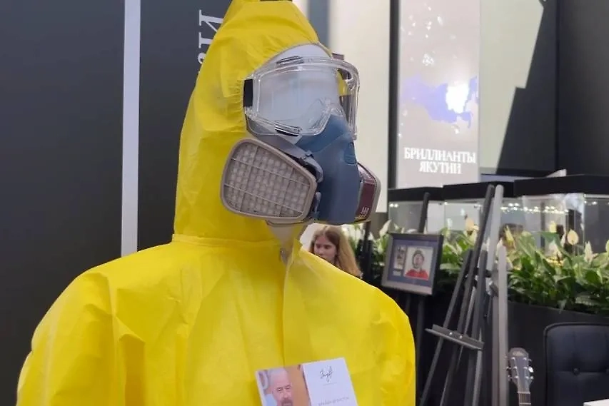 Среди любопытных экспонатов на просторах 27-го Петербургского международного экономического форума (ПМЭФ) корреспонденту Life.ru попался костюм, в котором в свою химическую лабораторию заходил персонаж американского актёра Брайана Крэнстона Уолтер Уайт, известный также как Хайзенберг, в популярном сериале "Во все тяжкие".