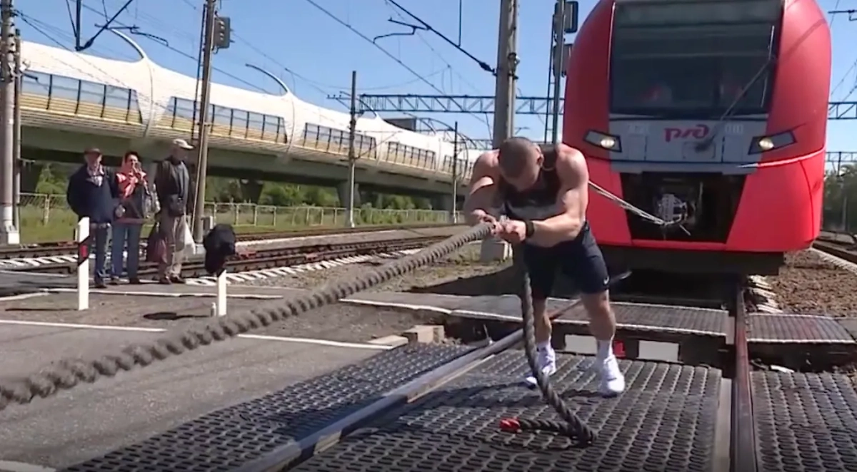 Российский атлет-экстремал Денис Вовк сдвинул "Ласточку" весом 300 тонн