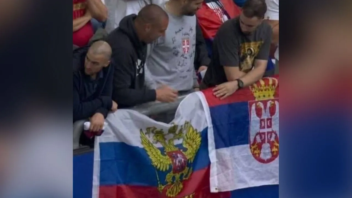 Российский триколор рядом с сербским на матче Евро-2024. Фото © Telegram / Срочный спорт | Sport24