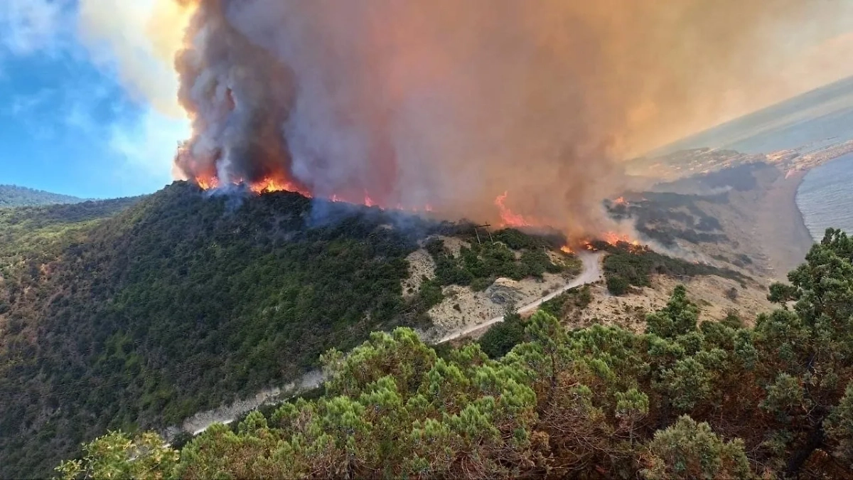 Мощный лесной пожар в Краснодарском крае, который уже охватил три базы отдыха. Обложка © VK / Обычный Ейск