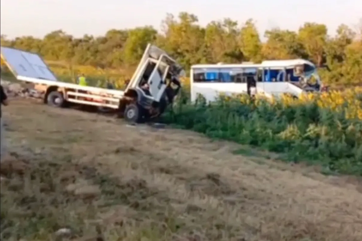 Инцидент случился около 4:16, когда грузовик марки "Ивеко" резко врезался в автобус. По данным правоохранителей, в результате аварии водитель автобуса получил смертельные травмы и скончался на месте. В больницы доставлены 16 пострадавших, которые нуждаются в срочной медицинской помощи.