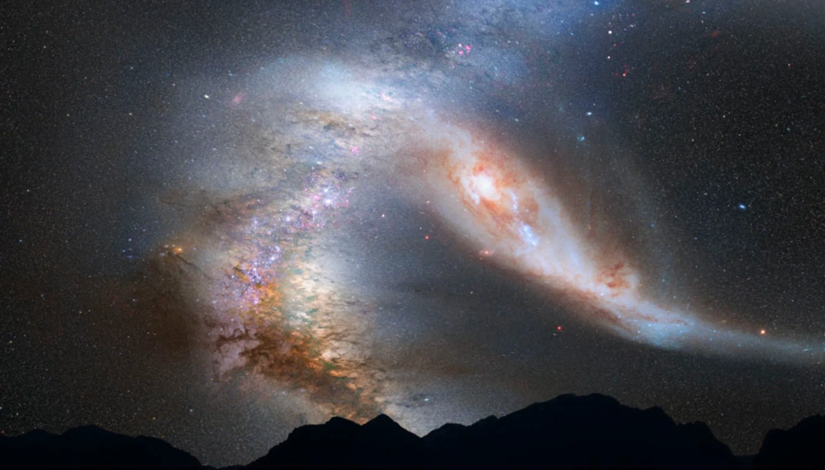 Как может выглядеть столкновение Млечного Пути с галактикой Андромеды в небе над Землёй. Фото © NASA
