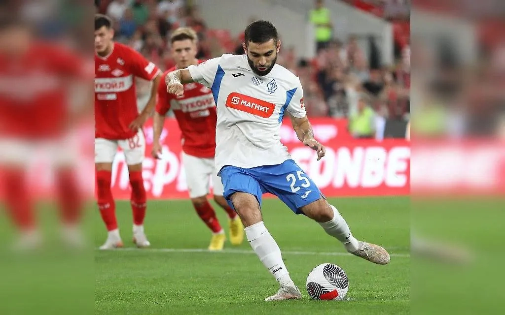 Гамид Агаларов забивает пенальти «Спартаку». Обложка © Telegram / ФК «Динамо» Махачкала