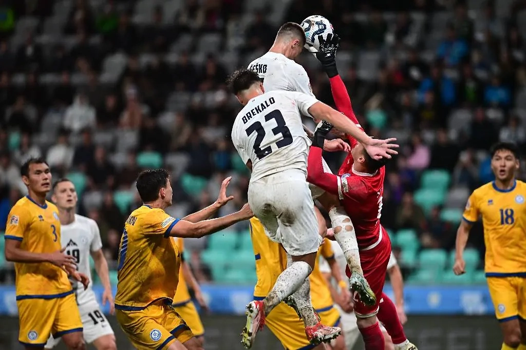 Борьба за мяч у ворот сборной Казахстана. Обложка © X / NZS | FA Slovenia