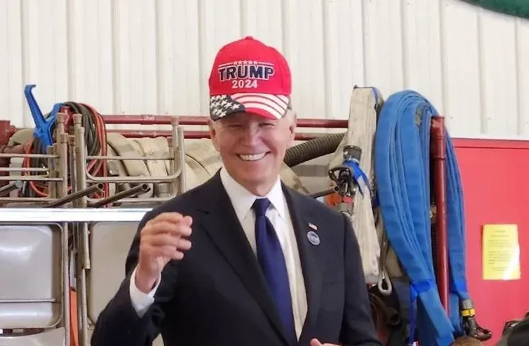 Байден с широченной улыбкой натянул на голову кепку с надписью «Трамп 2024» и попал на видео