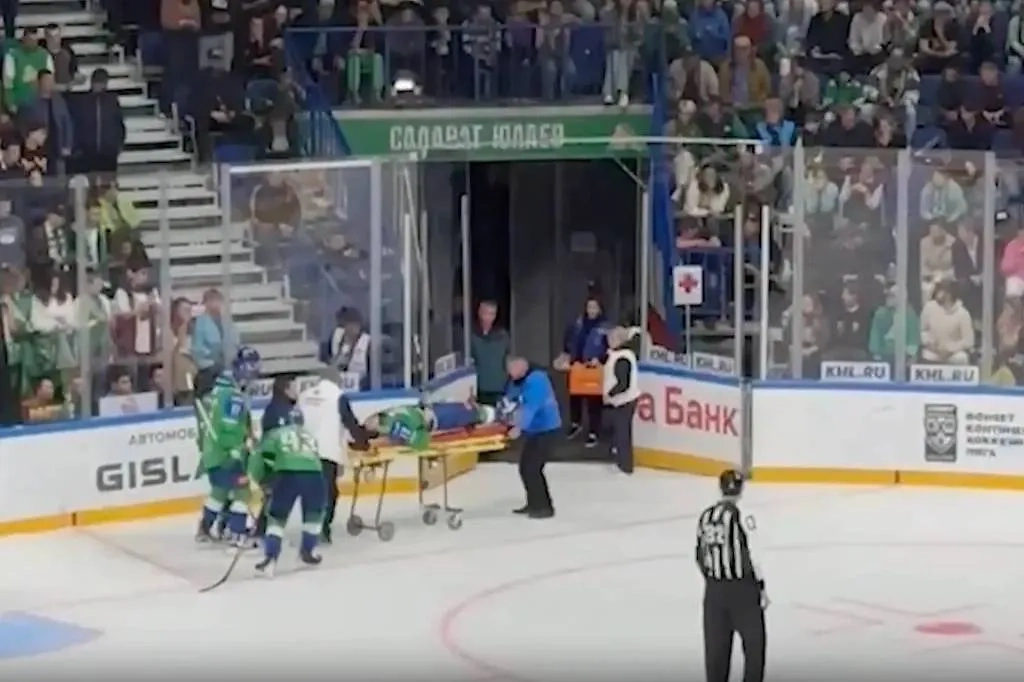 Нападающий ХК «Салават Юлаев» Глеб Кузьмин врезался головой в борт во время домашнего матча Континентальной хоккейной лиги (КХЛ) против омского «Авангарда». Спортсмена увезли со льда на носилках.