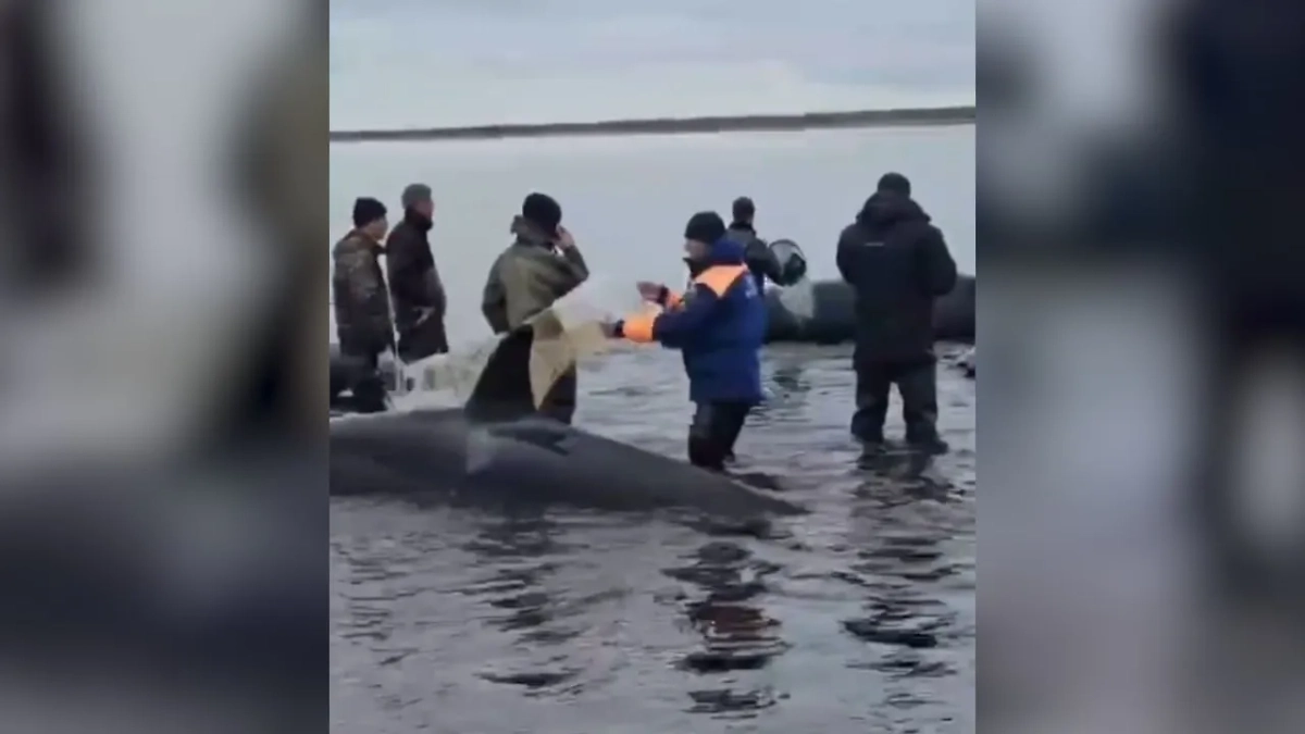 Напомним, в плен попали двое взрослых и двое детёнышей косаток. Одно из животных погибло. Прилив прогнозируется через несколько часов. Сотрудники Минприроды оповещены о проблеме.
