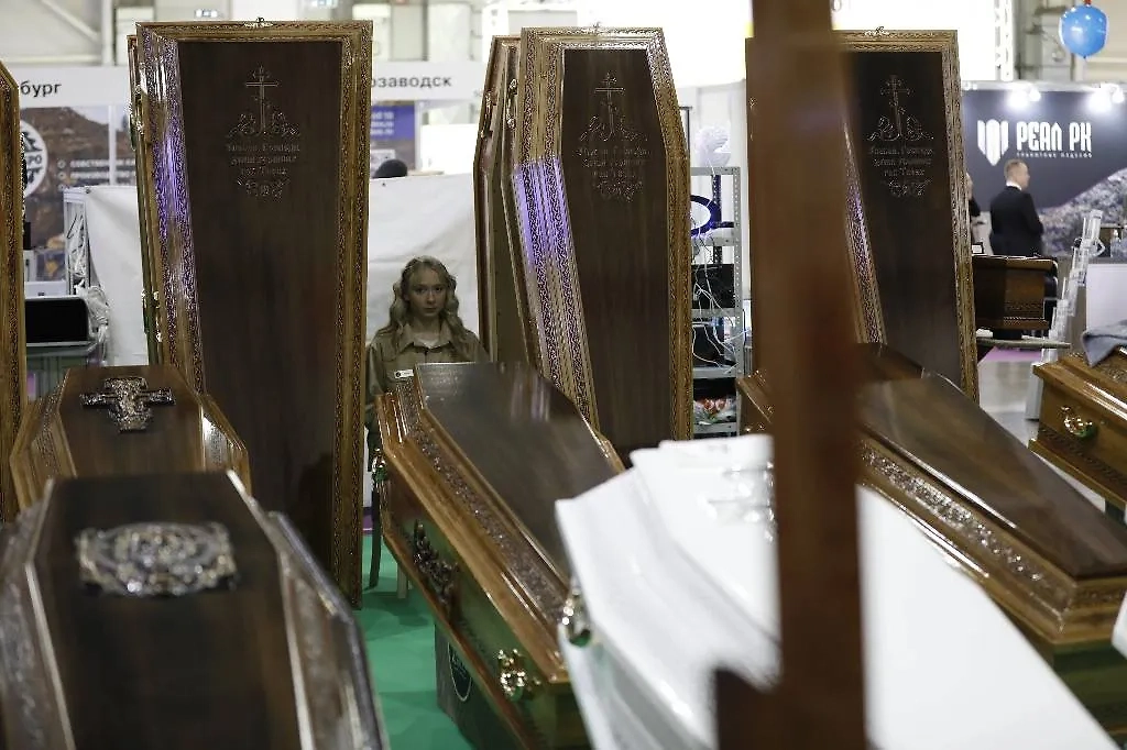 Гробы на выставке «Некрополь World Russia 2024» в Москве. Обложка © Life.ru