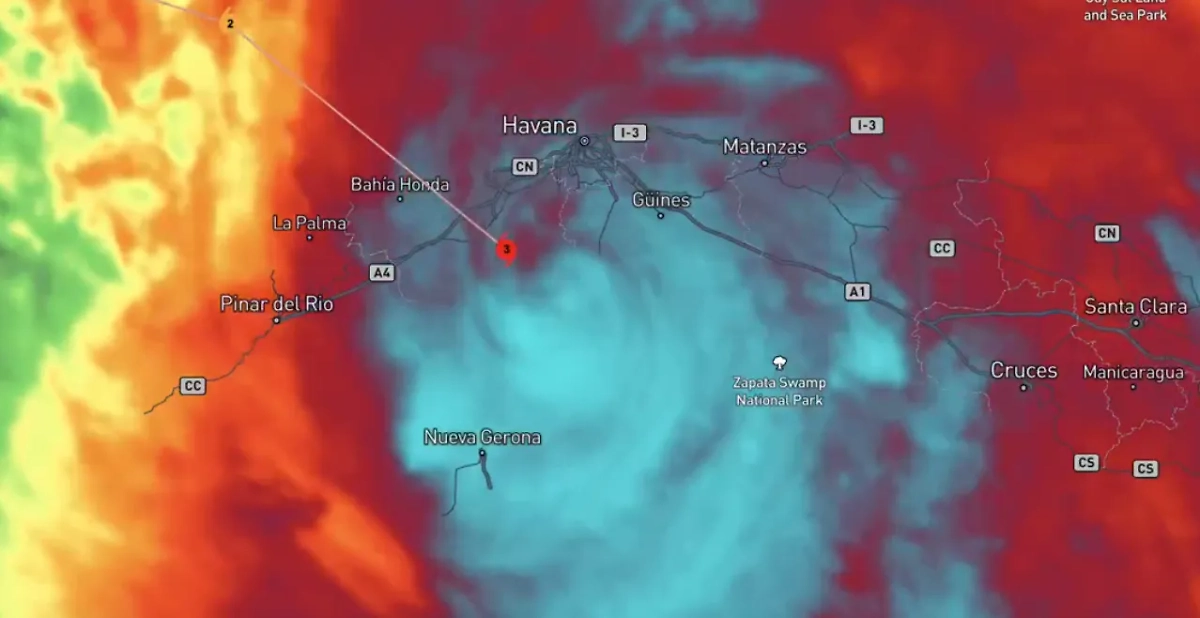 На данный момент ураган движется на северо-запад со скоростью 23 км/ч, а максимальная скорость ветра внутри стихии составляет 52 м/с. «Рафаэль» находится на расстоянии 135 км к югу от Гаваны, столицы Кубы.