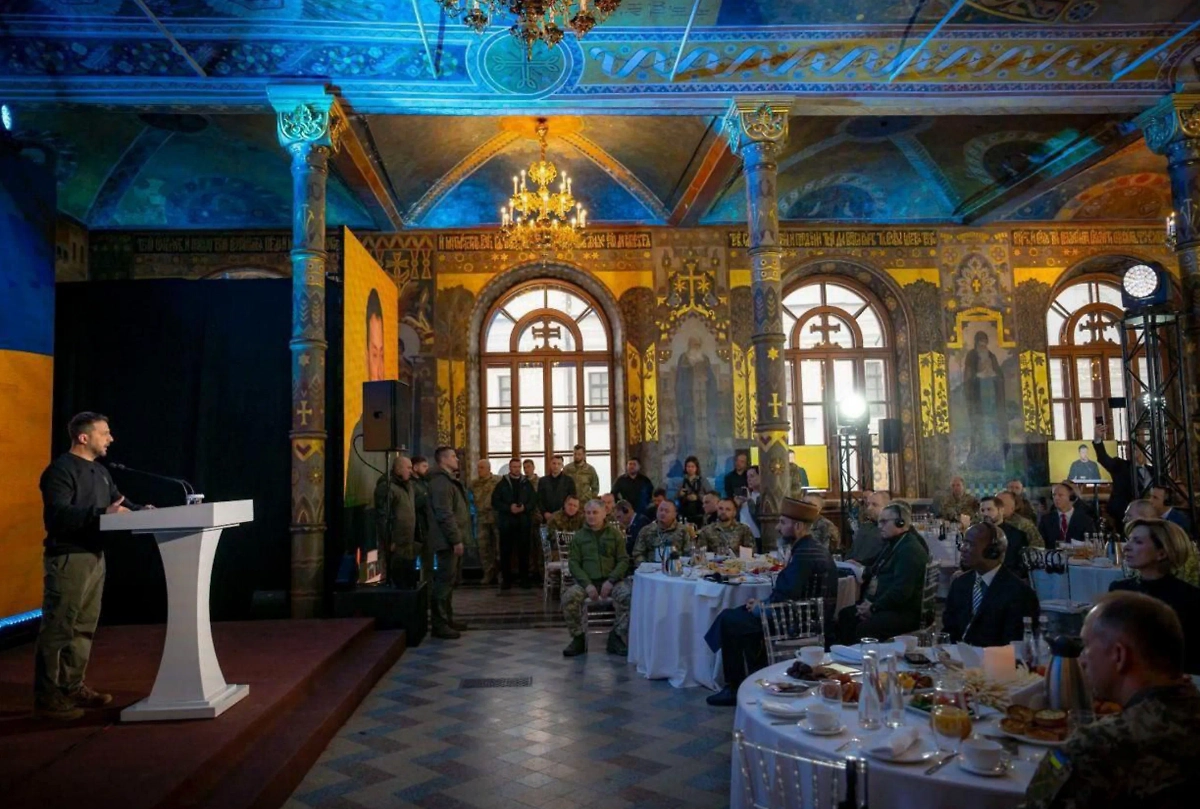 Напомним, Владимир Зеленский использовал трапезную Киево-Печерской лавры, чтобы провести «первый военный молитвенный завтрак». Глава киевского режима выступал со специально установленной трибуны. В зале сидели высшие военные чины и иностранные представители.