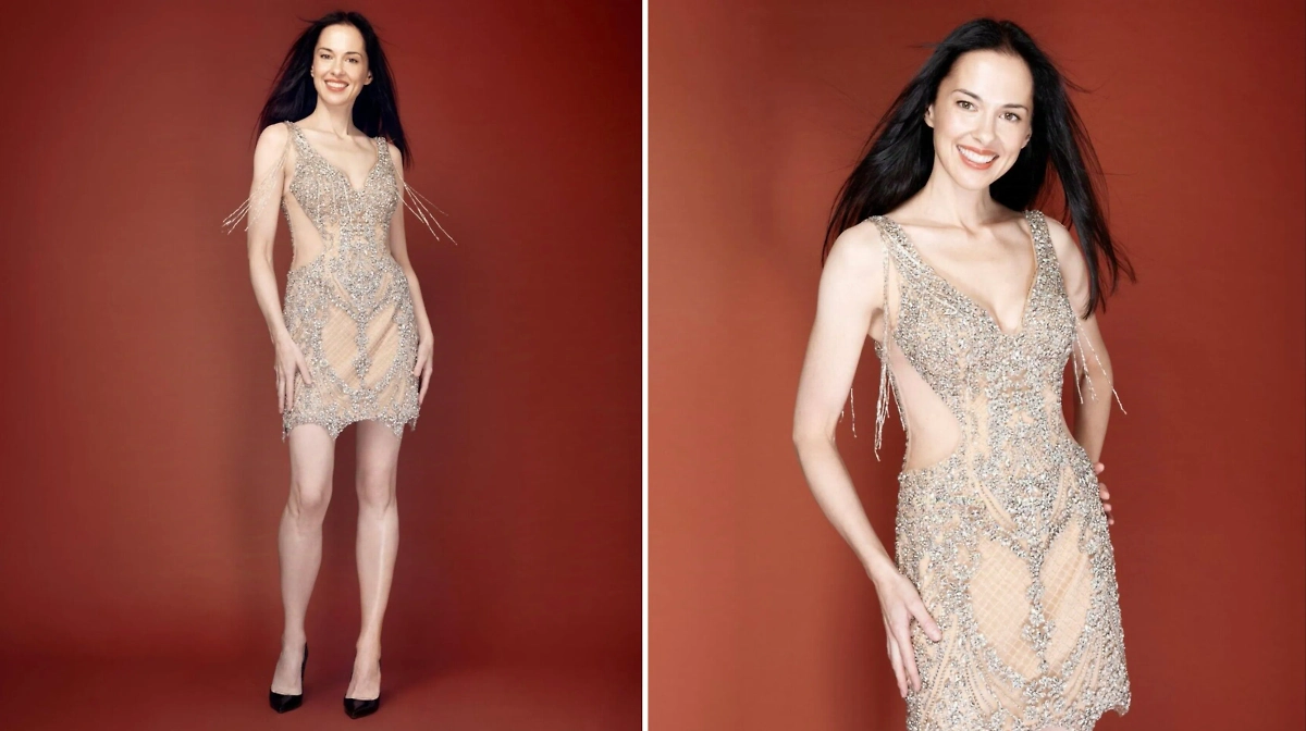 На фотографиях 46-летняя женщина предстала в блестящем полупрозрачном платье. Образ дополняли чёрные туфли на каблуках. Елена распустила волосы и сделала естественный макияж.
