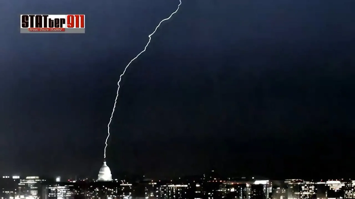 «Молния попала прямо в вершину Монумента Вашингтона и в купол Капитолия США», — говорится в сообщении.