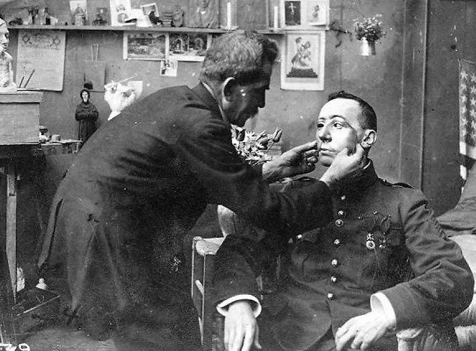 Как вспоминал бывший участник Первой мировой Израэль Рабон на страницах своей книги «Улица», в разорённых войной участках Европы, например в Польше, инвалиды войны мало кого интересовали. Он красочно описывает приют для людей, лишившихся в ходе боевых действий конечностей, которым никто не предоставлял даже протезы. В тыловых частях континента, конечно, ситуация была получше. Иногда протезированные ветераны войны даже писали картины или участвовали в спортивных соревнованиях. Но если война лишила вас лица, то путь к социализации для вас был полностью закрыт.