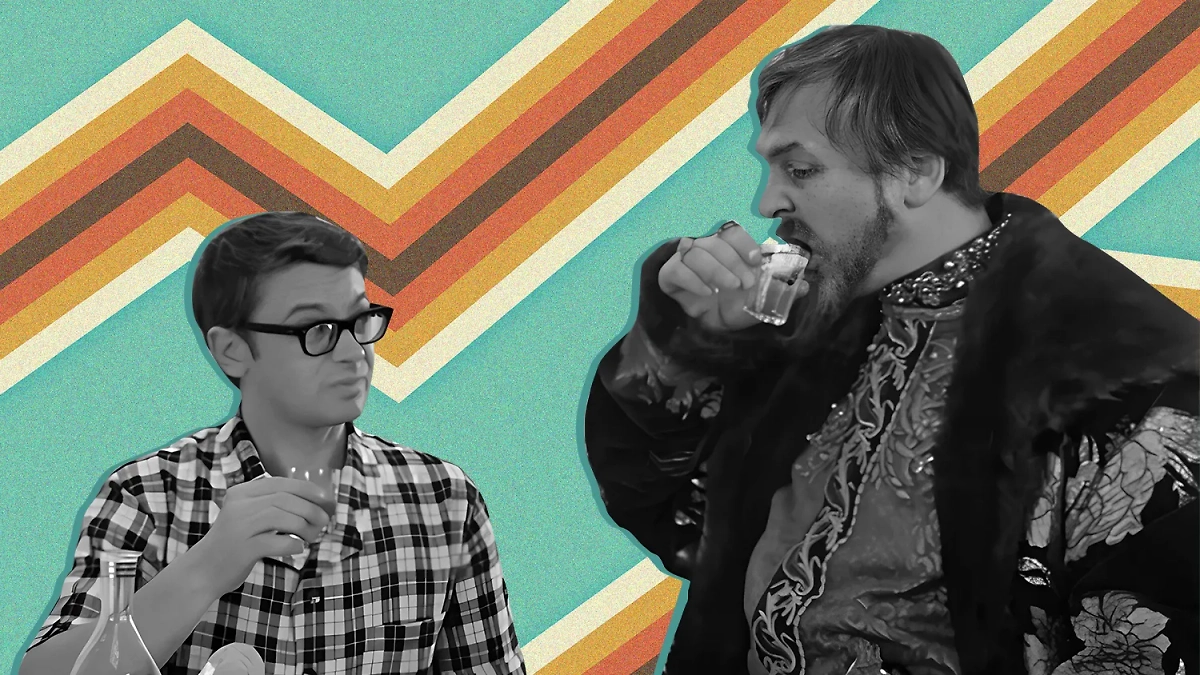 Таинственная водка в графине, которую Шурик наливает Ивану Грозному, не так проста, как кажется. Фото © «Иван Васильевич меняет профессию» (1973), режиссёр Леонид Гайдай, сценаристы Владлен Бахнов, Леонид Гайдай, Михаил Булгаков / Kinopoisk