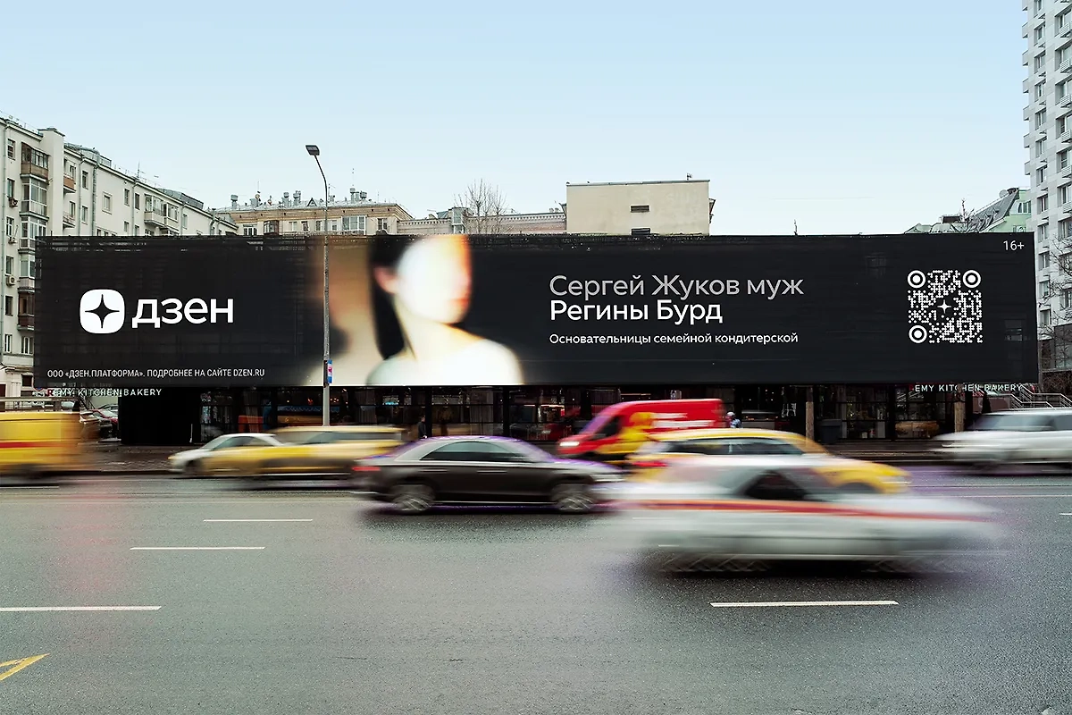 Для привлечения внимания к проекту «Дзен» запустил наружную рекламу. В крупных городах, таких как Москва и Новосибирск, появились билборды, на которых известные мужчины отходят на второй план, а в центре оказываются их любимые женщины.