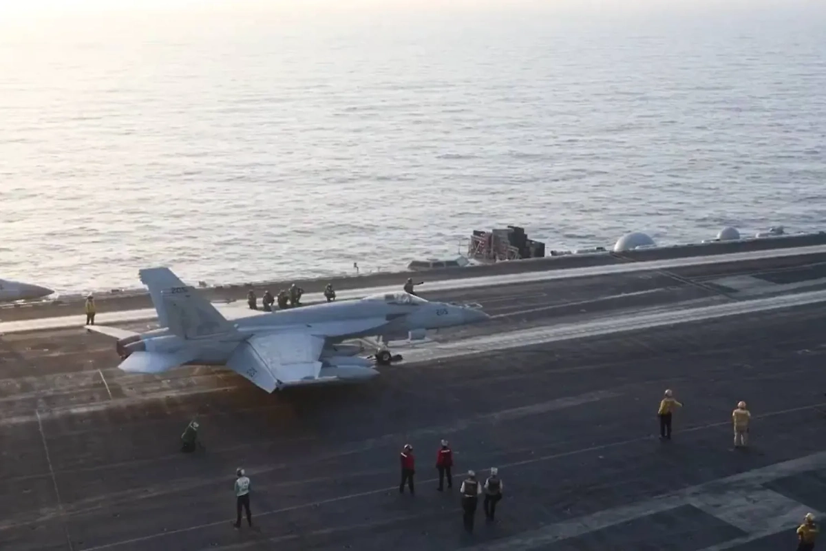 Также CENTCOM показало кадры начала военной операции. На них запечатлён взлёт нескольких истребителей-бомбардировщиков F/A-18 Hornet с борта авианосца.