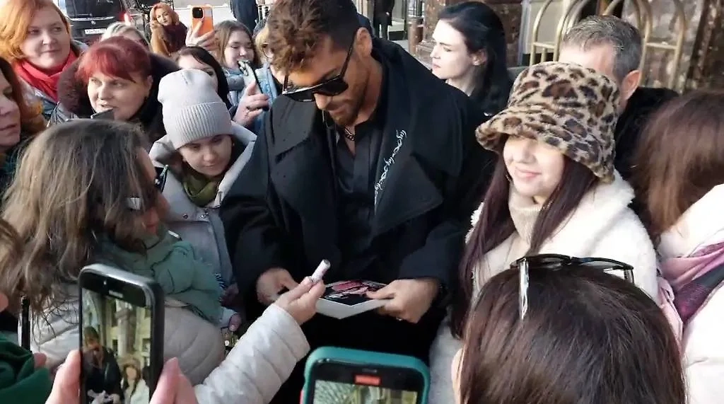Актёр Джан Яман раздал автографы и пообщался с фанатками у отеля в Москве