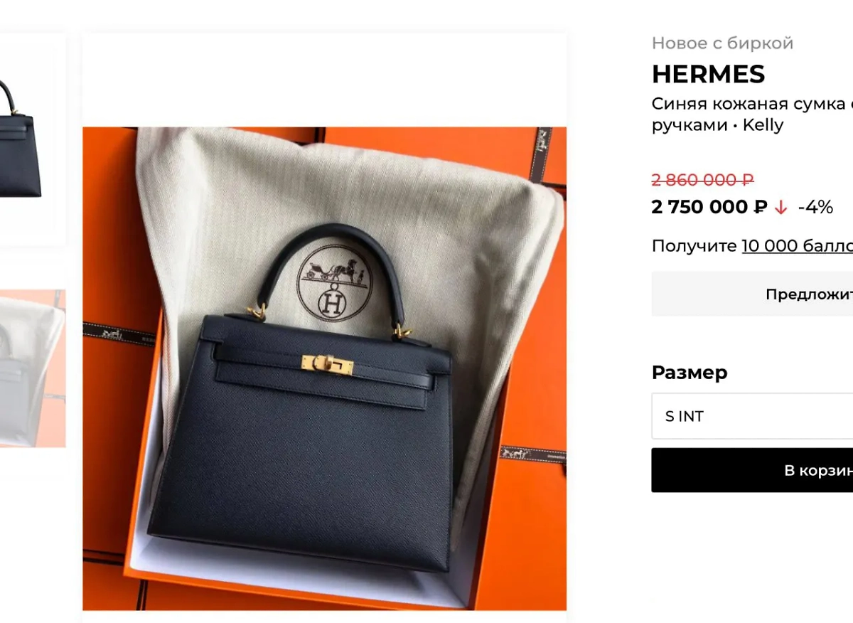 - клатч Hermes — 2,5 млн рублей;