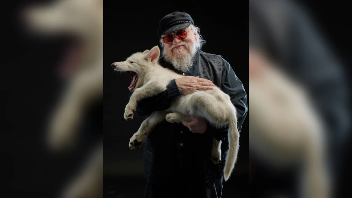 Автор популярной серии романов «Песнь льда и пламени» американский писатель Джордж Мартин опубликовал снимок, на котором держит на руках «лютоволка». Фотографию он выложил в личных соцсетях на фоне сообщений о том, что учёные «воскресили» вымерший вид волков.
