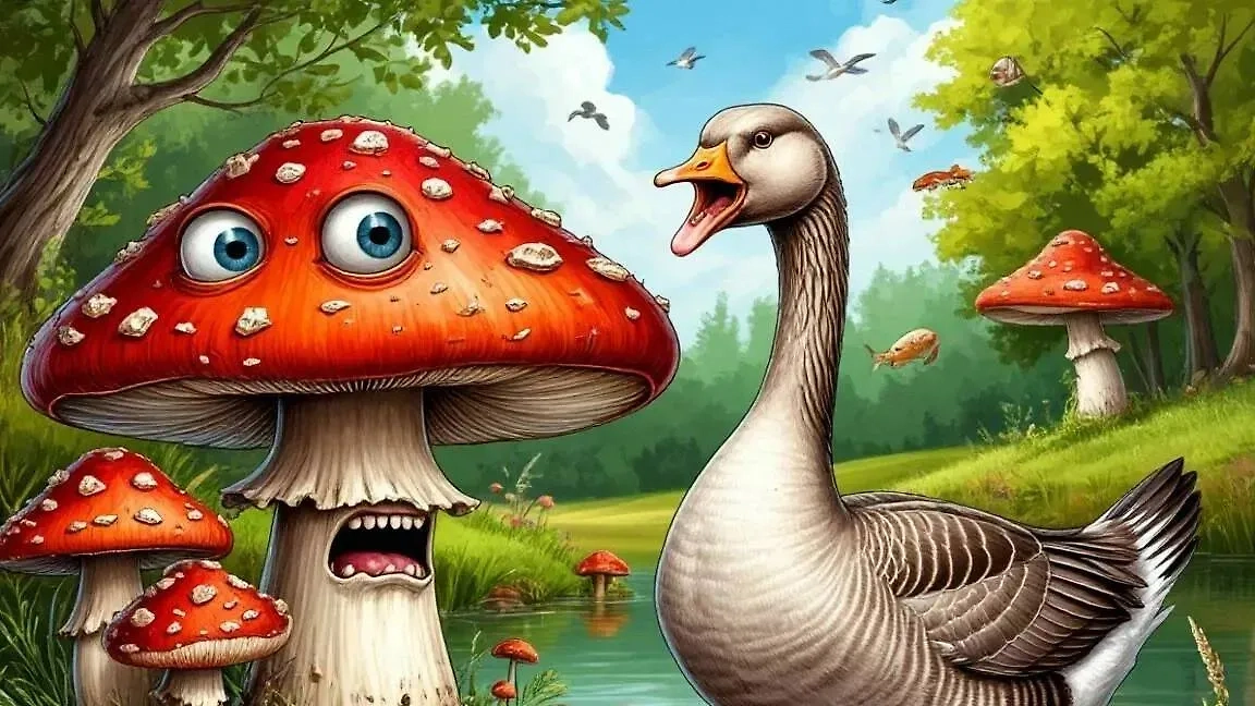 Грибы с глазами и воюющие свинья и гусь: Нейросеть оживила русские пословицы и поговорки