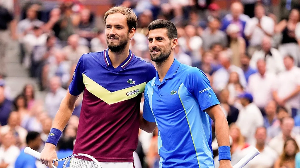 Данил Медведев и Новак Джокович. Обложка © ТАСС / Frank Franklin II