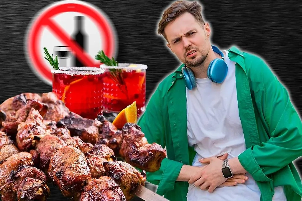 Часто в тёплое время года, а особенно на майских праздниках, принято жарить шашлыки. Сильно обжаренное мясо обычно употребляют с алкогольными напитками (в основном с пивом и водкой). Однако такое сочетание наносит сильный удар по печени. Шашлыки из свинины с алкоголем считаются особенно вредными, так как свинина — очень жирное мясо. Печень сильно перегружается, перерабатывая и алкоголь, и жирную пищу. Часто после употребления шашлыка и алкоголя появляется боль в правом подреберье и тошнота. Также страдает пищеварительная система, появляются тяжесть и вздутие живота.