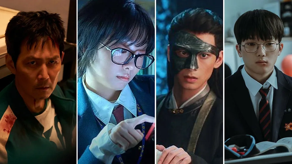 Дорамы 2025: что смотреть, какие самые топовые. Обложка © Кадр из фильма «Игра в кальмара», «Девять пазлов», «Сы Цзинь», «Слабый герой» / Kinopoisk