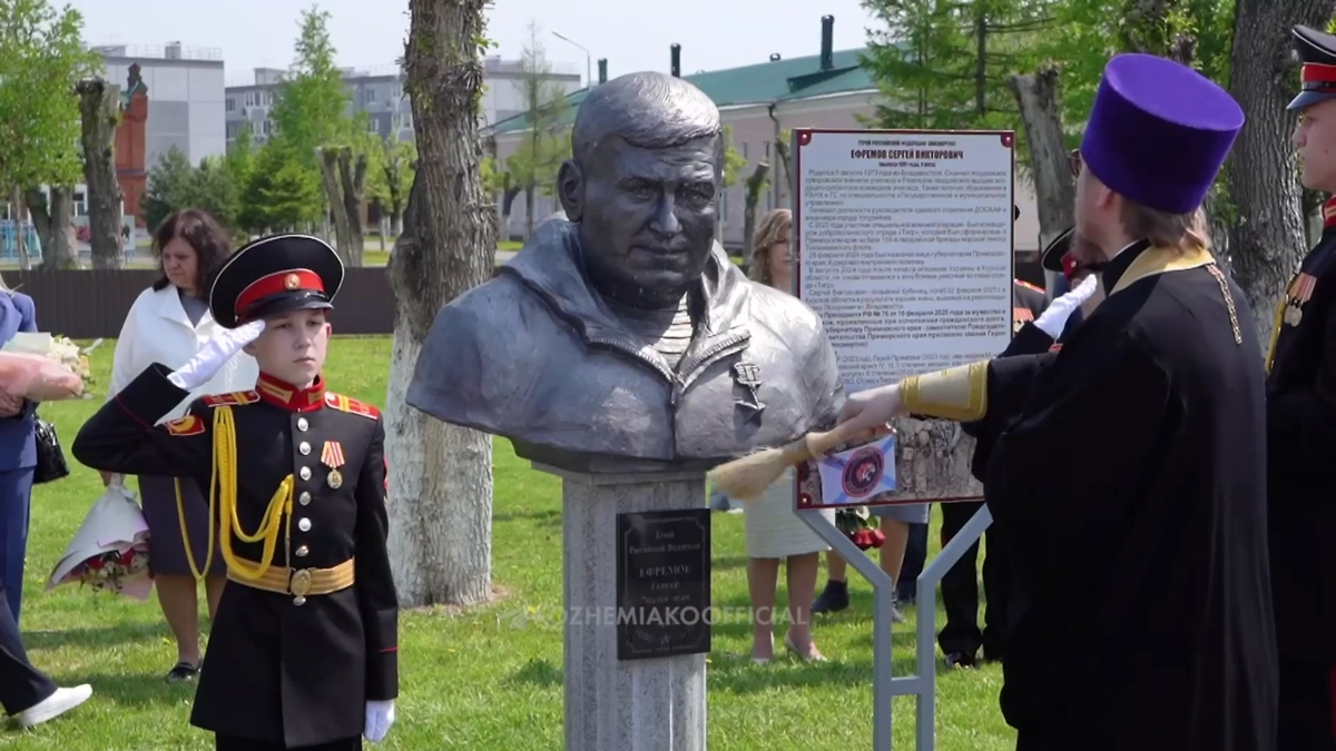 «Сергей Ефремов навечно остаётся в строю суворовского братства! Бюст Герою России, первому командиру добровольческого отряда «Тигр», вице-губернатору Приморья Сергею Ефремову установлен в его родном Уссурийском суворовском военном училище. Сергей Викторович был выпускником 1991 года. Его знают и уважают тут все — от генералов до новобранцев», — написал глава края.