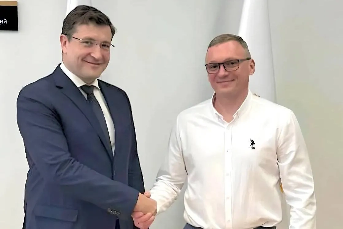 Губернатор Нижегородской области Глеб Никитин и новый главный тренер хоккейного «Торпедо» Алексей Исаков. Обложка © «ХК Торпедо»