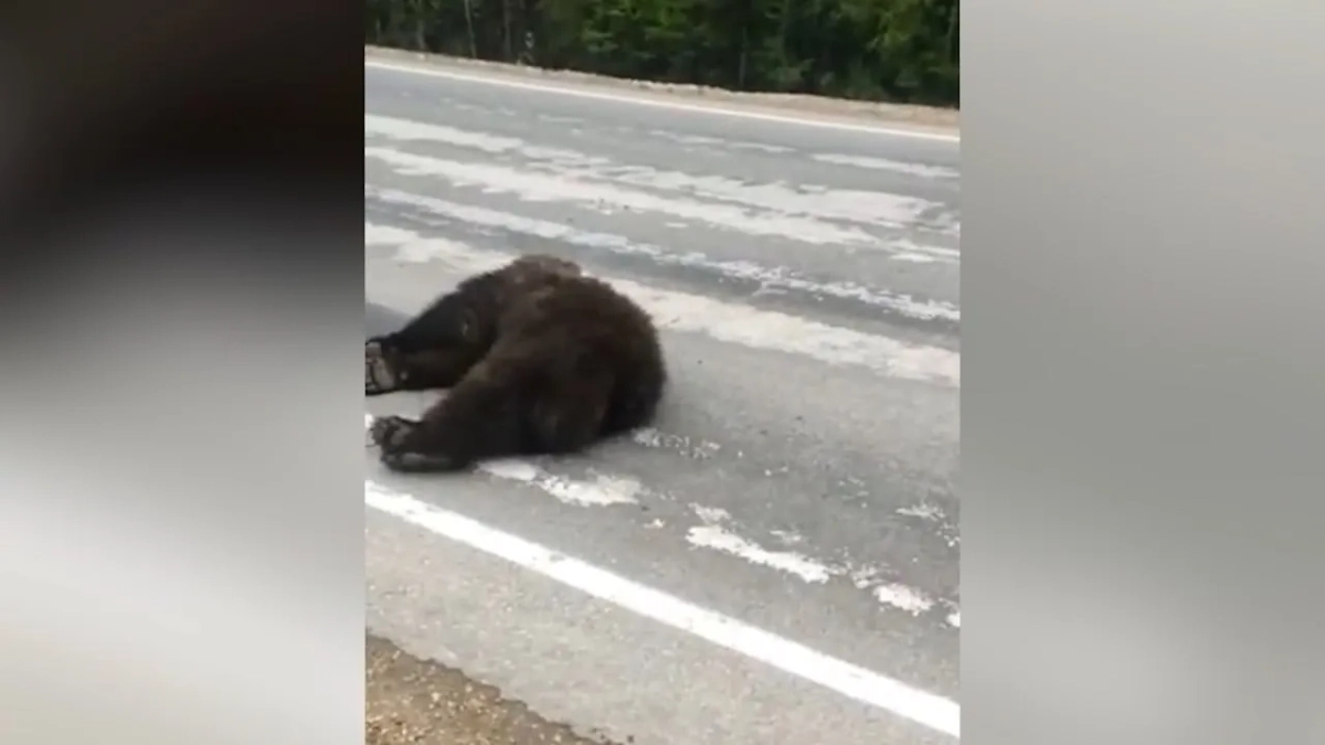 Лежавший в луже крови медведь «воскрес» на трассе в Якутии и жутко напугал водителей