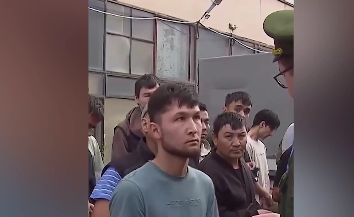 На записи видно, как сотрудник в военной форме проверяет документы у одного из приезжих и пытается выяснить, где он работает. Несмотря на три попытки, мигрант так и не смог внятно ответить на вопрос, поэтому ему предложили пройти в другое место для дальнейшего разбирательства.
