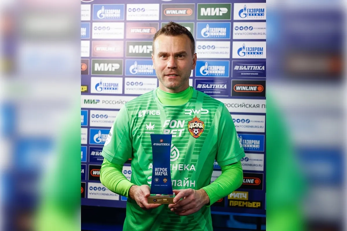 Акинфеева признали лучшим игроком в 500 матче РПЛ в качестве капитана ЦСКА. Обложка © Telegram / ПФК ЦСКА