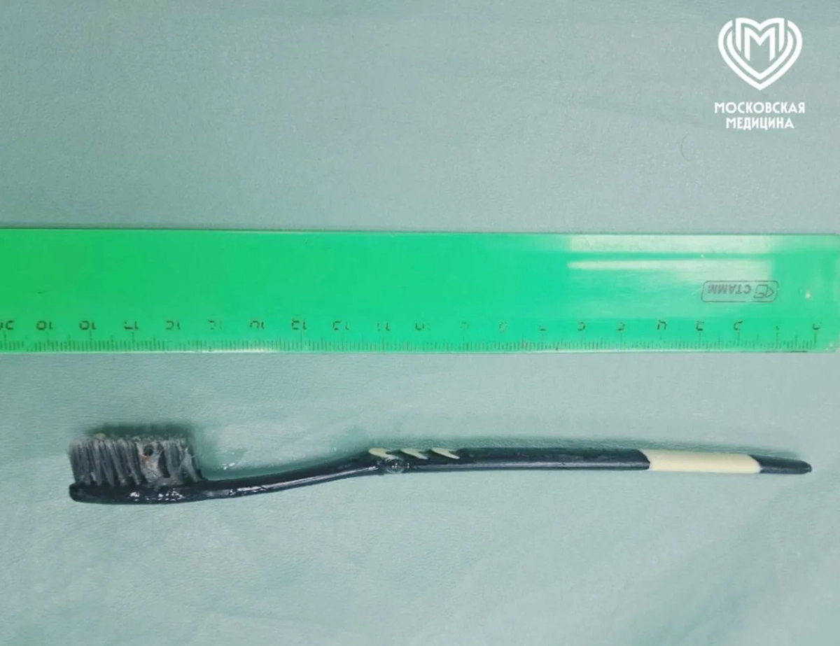 «Врачи успели «поймать» предмет личной гигиены в желудке. Но одним цепким хватом вынуть щётку не удалось. Оказалось, что она уже проскользнула в просвет двенадцатиперстной кишки и дистальным щетинистым концом там зафиксировалась. Врачи сначала аккуратно высвободили инородное тело, а потом уже его извлекли из желудка», — говорится в тексте.