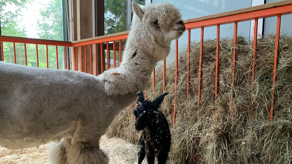 На Городской ферме ВДНХ пополнение — родилась чёрная малышка-альпака
