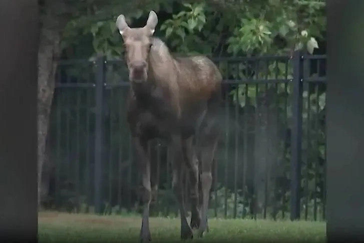 Захарова прикрепила видео, где по улицам города Анкоридж разгуливает здоровенный лось. Животное вышло из леса рядом с огороженной территорией авиабазы, где вскоре состоятся переговоры РФ и США.