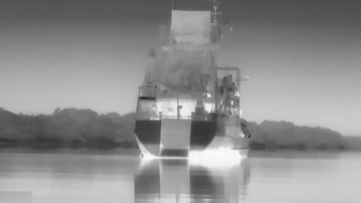 Министерство обороны России представило новое видео, запечатлевшее атаку безэкипажного катера на украинский средний разведывательный корабль «Симферополь» в районе устья Дуная. Кадры опубликованы в телеграм-канале ведомства.