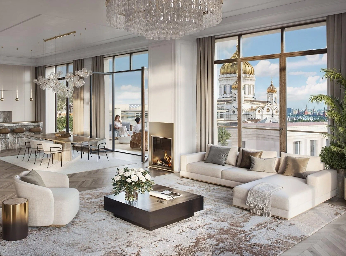 Элитная квартира площадью 782 квадратных метра расположена в строящемся клубном доме «Обыденский №1» на Остоженке в центре столицы. Сдача комплекса запланирована на 2026 год, при этом стоимость квадратного метра превышает девять миллионов рублей.