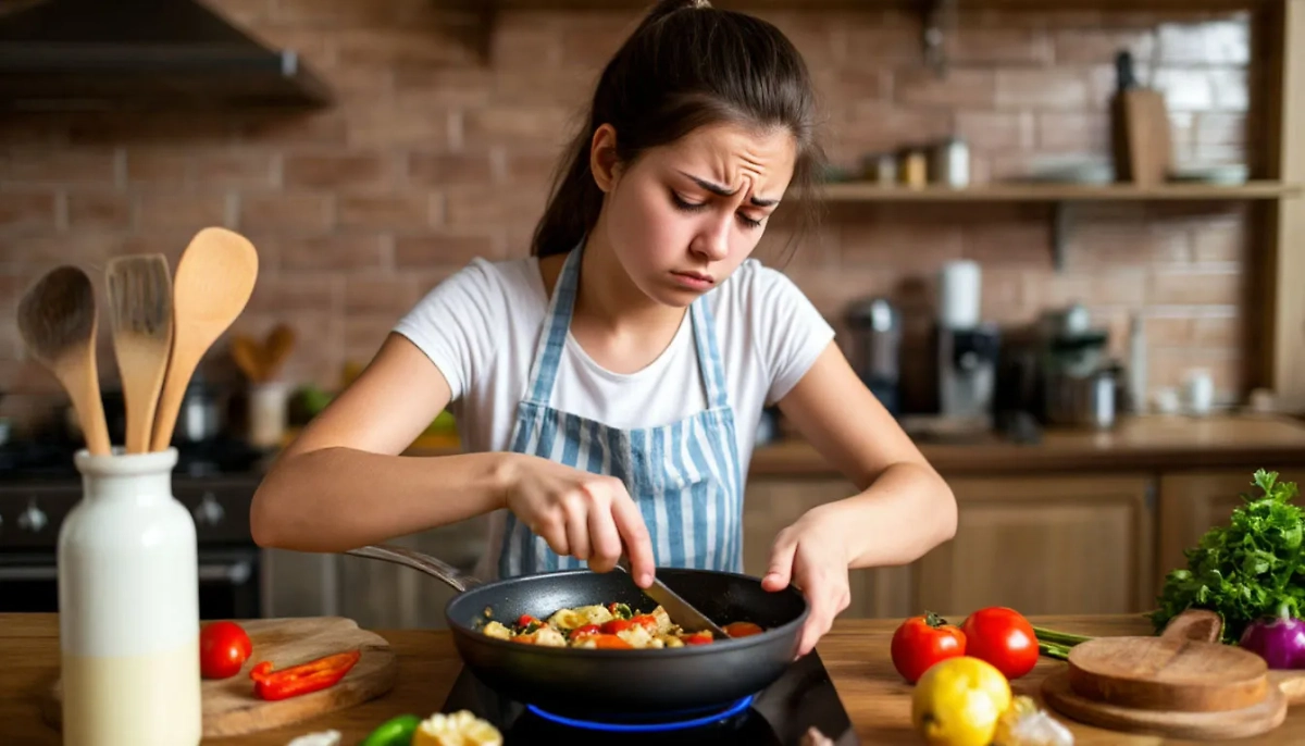 Уставшая девушка готовит еду. Обложка © «Шедеврум» / Life.ru