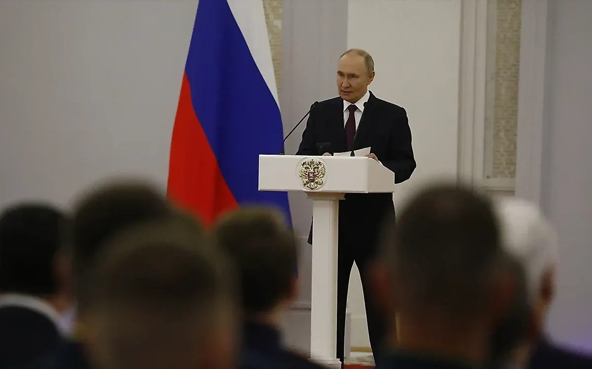 «И на этом фоне киевский режим, стремясь продемонстрировать своим западным спонсорам хоть какие-то успехи, пытается наносить удары вглубь российской территории по абсолютно мирным объектам», — сказал Путин.